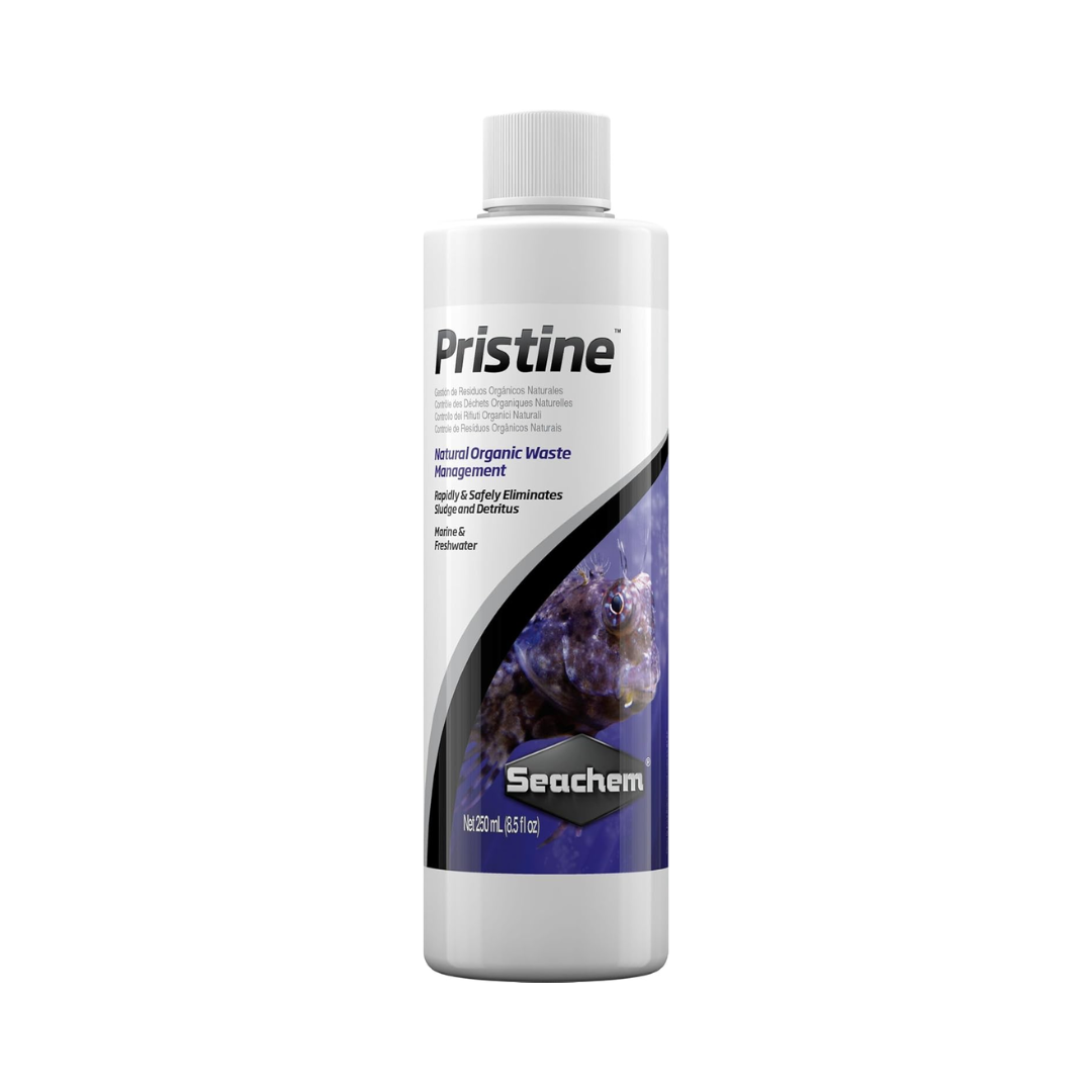 Seachem プリスティンは、水槽内に蓄積した有機汚れや不純物を分解・除去し、水質をクリーンな状態へとリセットするための水質浄化剤です。